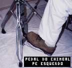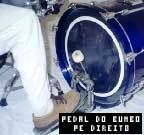 | Como já vimos alguns exercícios envolvendo as mãos (aula2) nesta aula vamos observar e praticar alguns exercícios envolvendo os pés, mas antes, veja nas fotos ilustrativas ao lado, o posicionamento correto dos pés nos pedais (OBS: CHIMBAL com pé esquerdo. BUMBO com pés direito. Para os canhotos é só inverter). A princípio, movimente os pedais sem tirar o apoio do calcanhar sobre o pedal. |